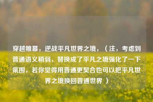 穿越帷幕,逆战平凡世界之境,(注,考虑到普通语义稍弱,替换成了平凡之境强化了一下氛围,若你觉得用普通更契合也可以把平凡世界之境换回普通世界 )