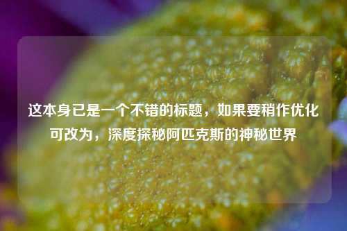 这本身已是一个不错的标题,如果要稍作优化可改为,深度探秘阿匹克斯的神秘世界